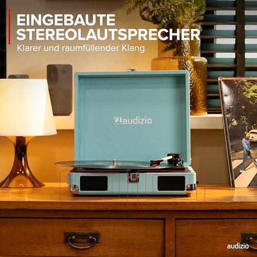 - Schallplattenspieler mit Lautsprecher : Tragbarer Retro Plattenspieler im Koffer-Design mit integriertem Stereo-Sound ganze ohne externe Lautpsrecher – idealer Gramophone für Musikliebhaber und Sammler.