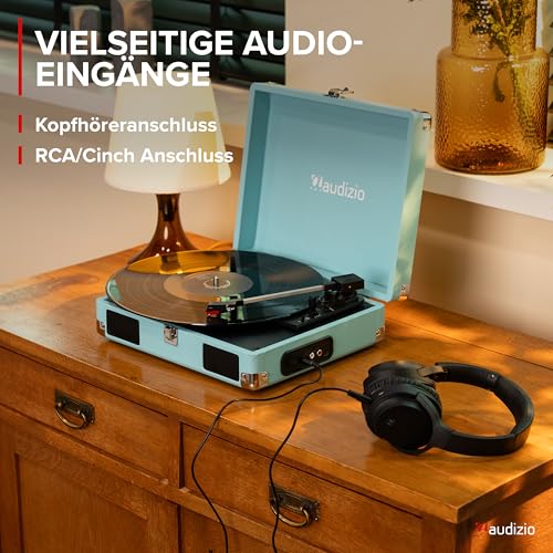 - Anschlüsse & Verbindung : Schließen Sie Ihre Musikboxen an – Vinyl Record Player mit Cinch-Ausgang (RCA) zum Anschluss an Stereoanlage sowie 3,5 mm Klinke für Kopfhörer – flexibler Home Audio Record Players.