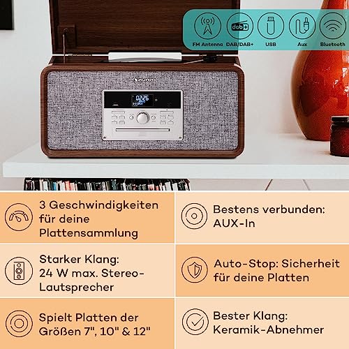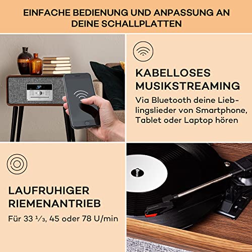 Auna Plattenspieler mit Lautsprecher, CD Player & USB Plattenspieler mit Bluetooth & DAB+/FM Radio, Retro Schallplattenspieler mit Beinen, MP3 & Fernbedienung, Vinyl-Plattenspieler für Schallplatten